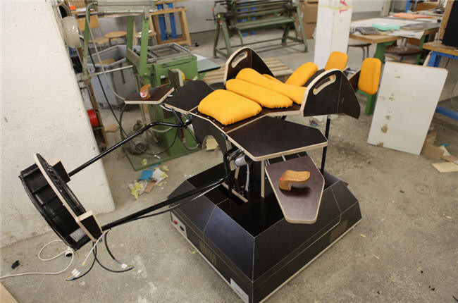 El sensor de Oculus Rift está conectado al sistema mecánico con el que movemos los brazos y que también hace que giremos con los controles dispuestos en los extremos de esas «alas». Para dar aún mayor sensación de realismo, los creadores han integrado un ventilador que funciona a mayor o menor intensidad según nuestra orientación y velocidad.