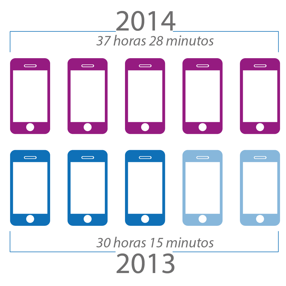 Del estudio se desprende que en el cuarto trimestre de 2014 éstos emplearon unas 37 horas con 28 minutos al mes en contraste con el 2013 cuando cada persona utilizó unas 30 horas y 15 minutos mensualmente.